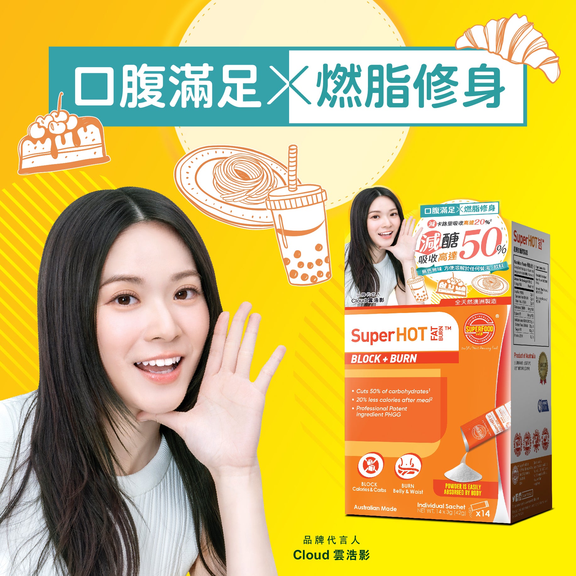 SuperHOT全方位「抗醣燃脂 – Block + Burn」,能針對性控制飲食中的醣分 (碳水化合物和糖分),於消化過程中抗醣達50%及減少 20%卡路里吸收*,享受大餐的同時,也可以盡量輔助生酮飲食的原則,是忙碌都市人的恩物。